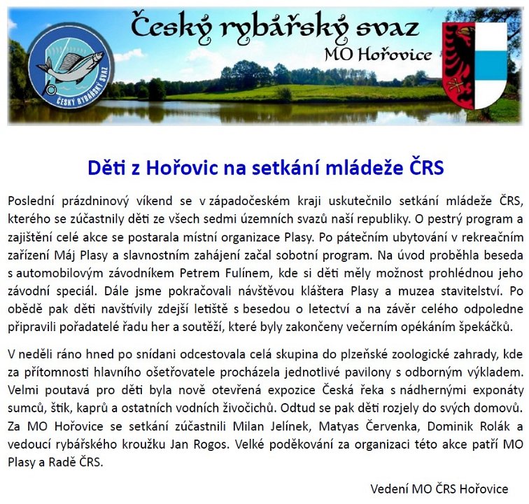 Děti z Hořovic na setkání mládeže ČRS