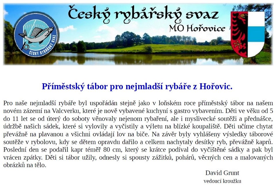 Příměstský tábor pro nejmladší rybáře z Hořovic