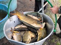 Z výlovu rybníků Červený a Kašparák jsme vysadili 2.800 kg kapra, 70 kg štiky a 100 kg plotic s perlínem. Nad rámec ZP vysazeno od Colloredo Mansfeld 110 kg okouna.