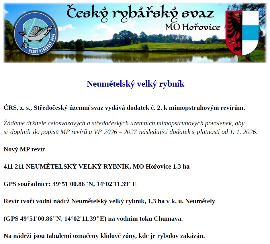 pronajímají rybník Nohavice tam ve spolupráci s MO ČRS Hořovice