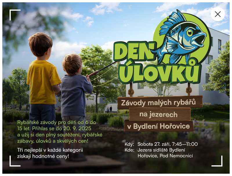 Rybářské závody pro děti 6 - 15 let na jezerech v Bydlení Hořovice.